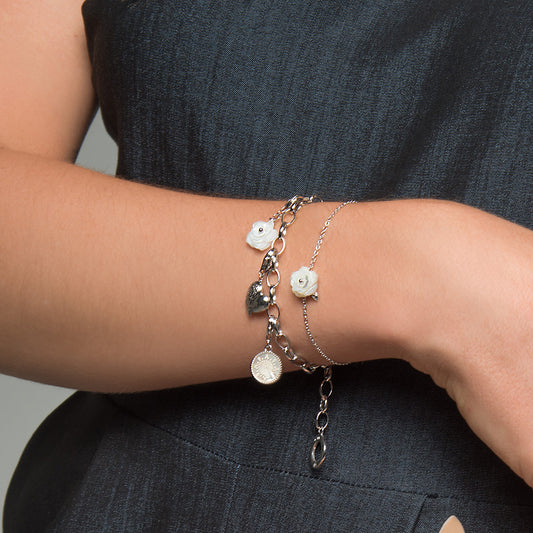 Charm 925er Silber Windrose Perlmutt Weiß