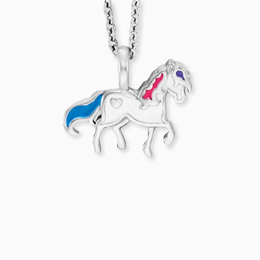 Kinder Halskette 925er Silber Pferd mit Emaille