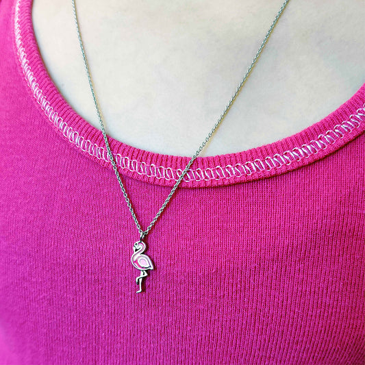 Kinder Halskette 925er Silber Flamingo mit Emaille