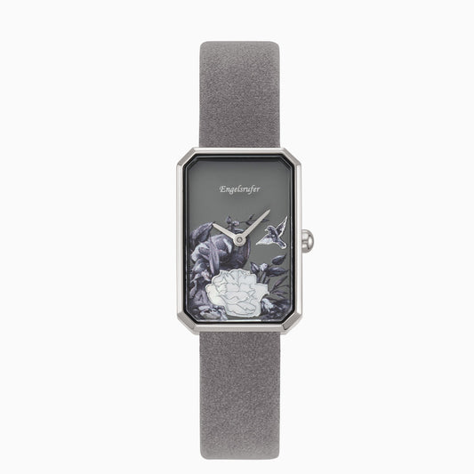 Set Uhr Edelstahl Blume & Armband 925er Silber Herz mit Markasit