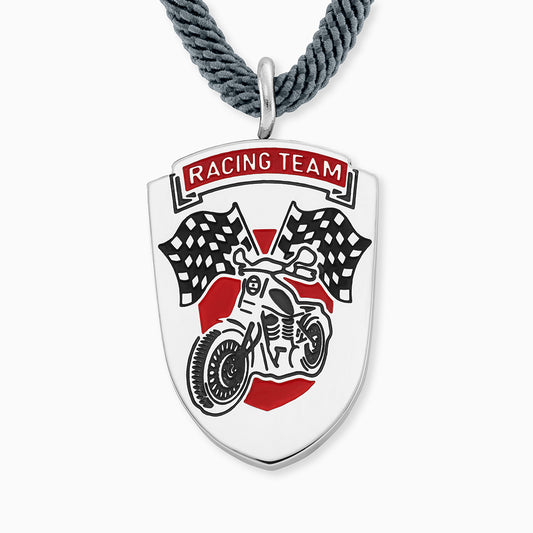 Kinder Halskette Edelstahl Rennfahrer mit Emaille