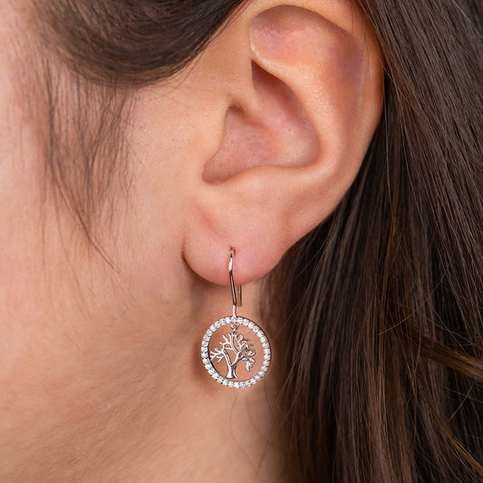 Ohrhänger 925er Silber Lebensbaum mit Zirkonia