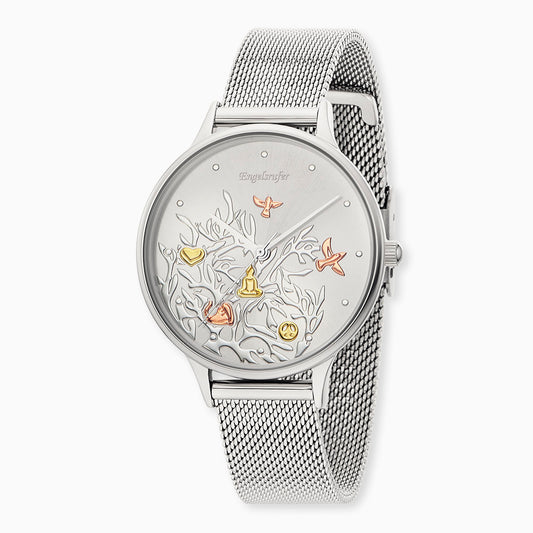 Uhr Edelstahl Lebensbaum Tricolor mit Edelstahl Mesh-Band