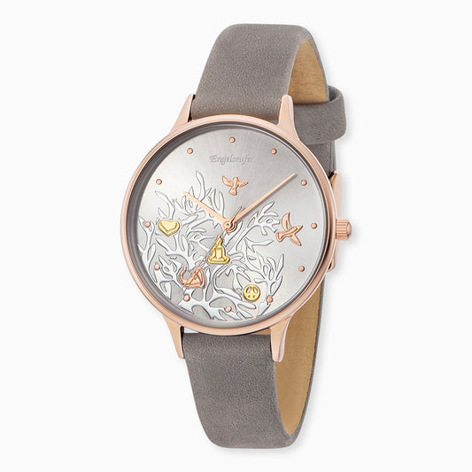 Uhr Edelstahl Herzen Tricolor mit Nubuk Lederband Grau