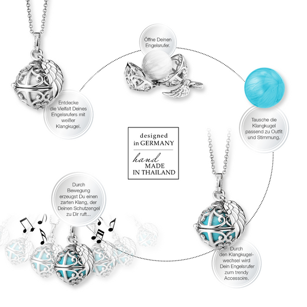 Die Töne der Klangkugel sind so konzipiert, dass sie positive Schwingungen und Energie erzeugen. Mit seinem zarten Klang rufst Du Deinen ganz persönlichen Schutzengel zu Dir. Die Engelsrufer-Philosophie basiert auf der Idee, dass Engel uns beschützen und uns in schwierigen Zeiten zur Seite stehen. Jeder Engelsrufer ist ein einzigartiges Schmuckstück, das uns an die Präsenz von Engeln erinnert und uns hilft, uns mit unseren positiven Energien zu verbinden.