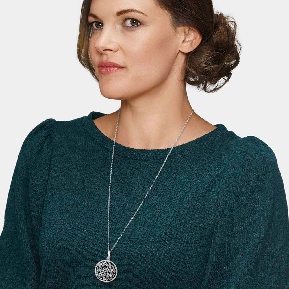 Flower of Life - dieser filigrane Anhänger mit dem Symbol der Lebensblume sorgt für einen tollen Blickfang und überzeugt durch seine kraftvolle Formensprache. Seit langer Zeit symbolisiert die Lebensblume Harmonie und Ausgeglichenheit und ist ein Zeichen von Ruhe, Kraft und Lebensfreude zugleich. Kombiniert mit mehreren Anhängern und Ketten entsteht ein toller Layering-Effekt, der als Duo, Trio oder Quartett eine wunderschöne Symphonie ergibt.