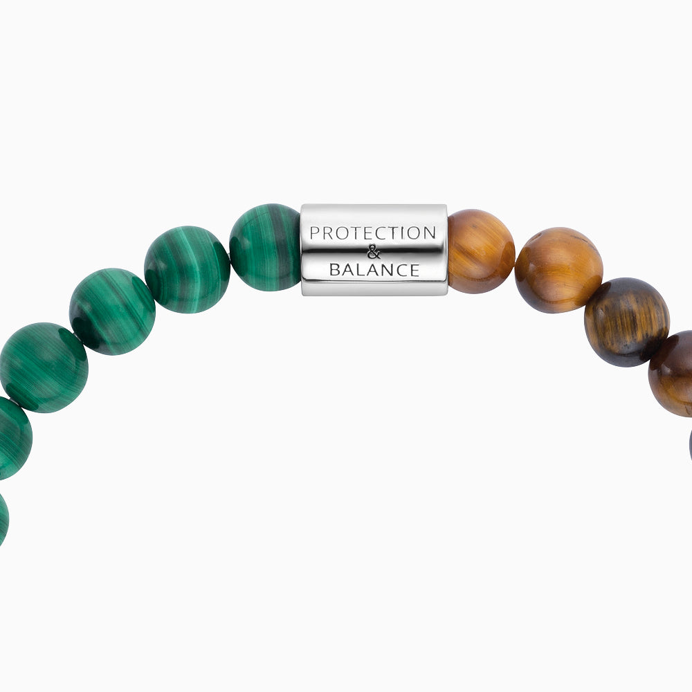Deine persönlichen Kraftsteine Malachit und Tigerauge, gemeinsam verbunden in einem filigranen Power-Armband aus echten Natursteinen der Powerful Stone Kollektion.