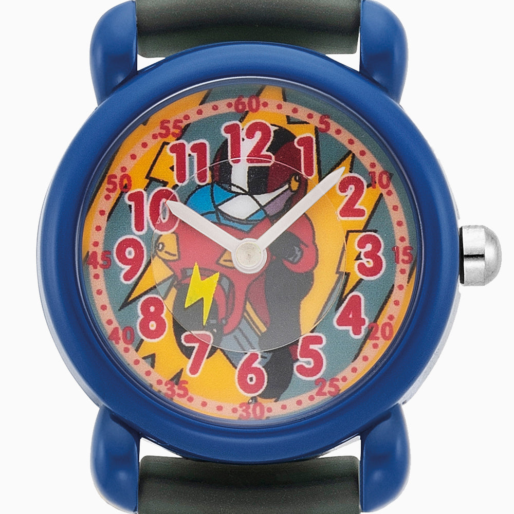 Die Uhr besticht durch leuchtende Farben, ein robustes Kunststoffgehäuse und ein weiches, angenehm sitzendes Kunststoffarmband, das sich von 13,5 cm bis 17 cm individuell einstellen lässt.