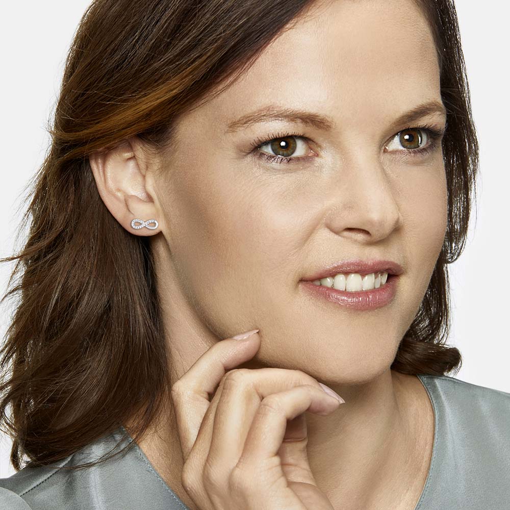 Keep it so simple: Pure Eleganz, wunderschöne Weiblichkeit und strahlende Jugend - alles in Einem verleihen diese wunderschönen filigranen Ohrstecker mit dem Symbol Unendlichkeit. Ein besonderes Highlight sind die edel schimmernden synthetischen Zirkonia Steine. Denn was könnte femininer sein als strahlend schöne Kristalle umgeben von klassischem Silber. Die Ohrringe sind perfekt mit einer Vielzahl unserer Schmuckstücke kombinierbar.