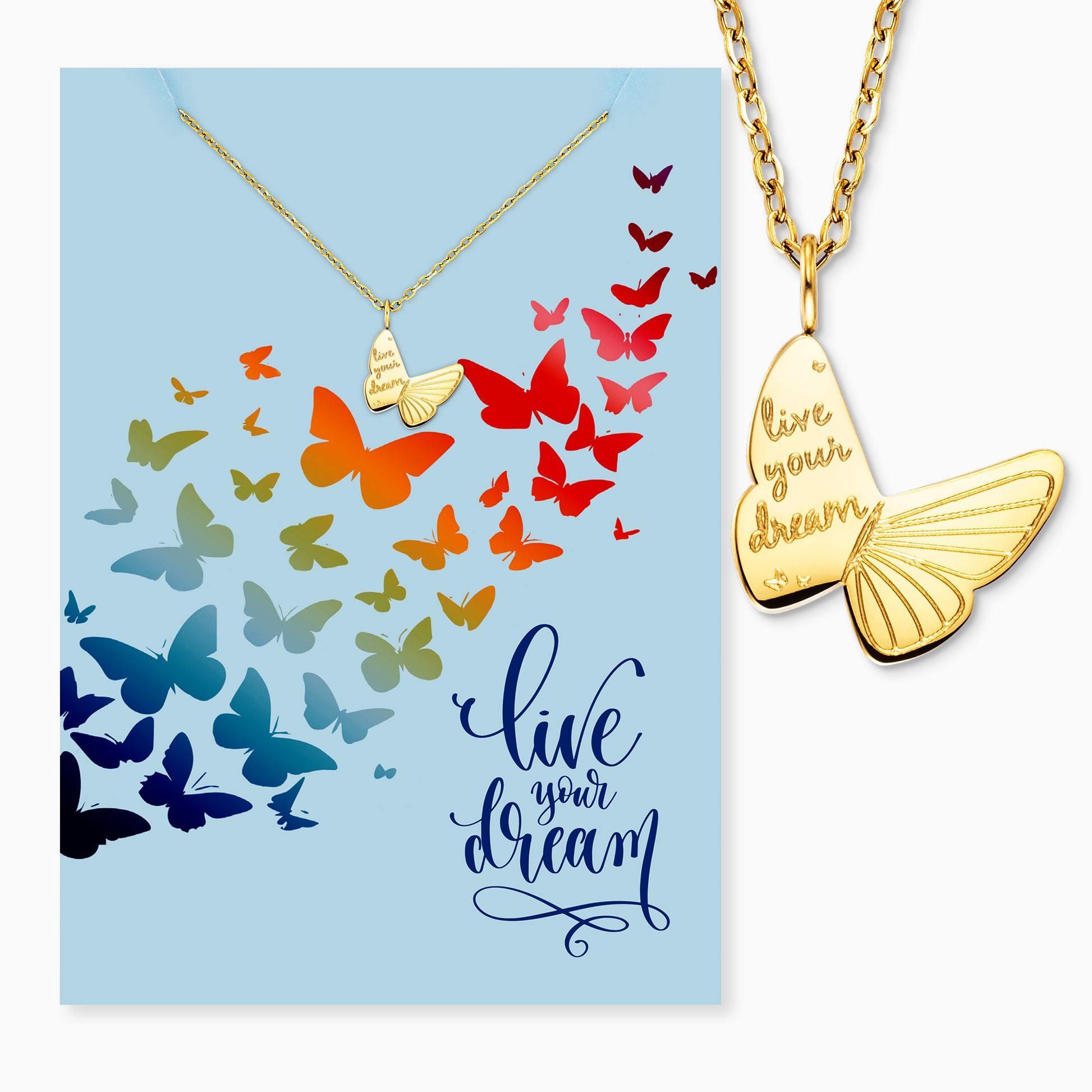 Diese elegante Halskette von MYSTEEL by Engelsrufer verkörpert die Schönheit der Verwandlung und die Freiheit, die eigenen Träume zu leben. Mit der eingravierten Botschaft „Live your dream“ erinnert dieses Schmuckstück täglich daran, an sich selbst zu glauben und den eigenen Weg zu gehen.