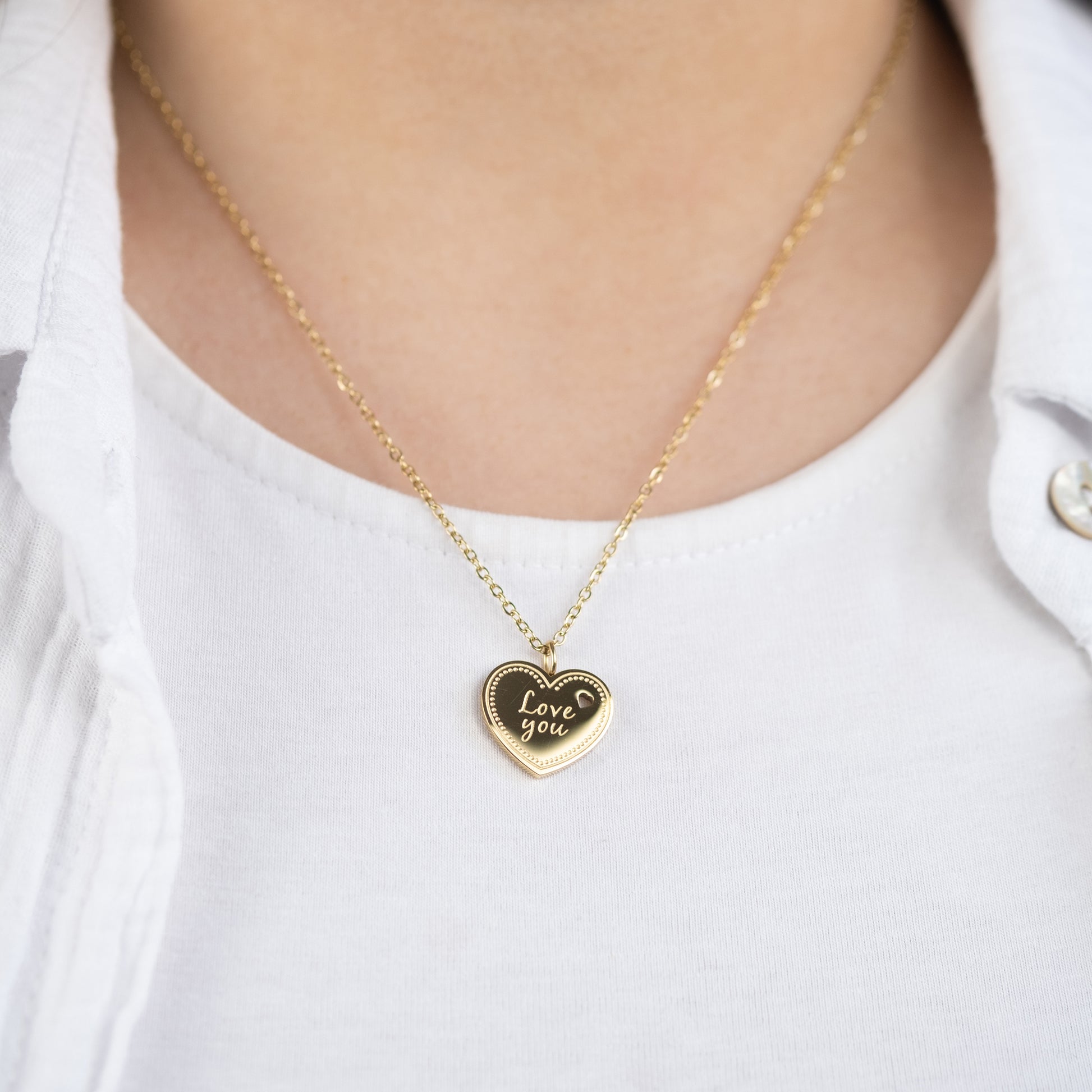 Grußkarte Love You mit Halskette Edelstahl Gold