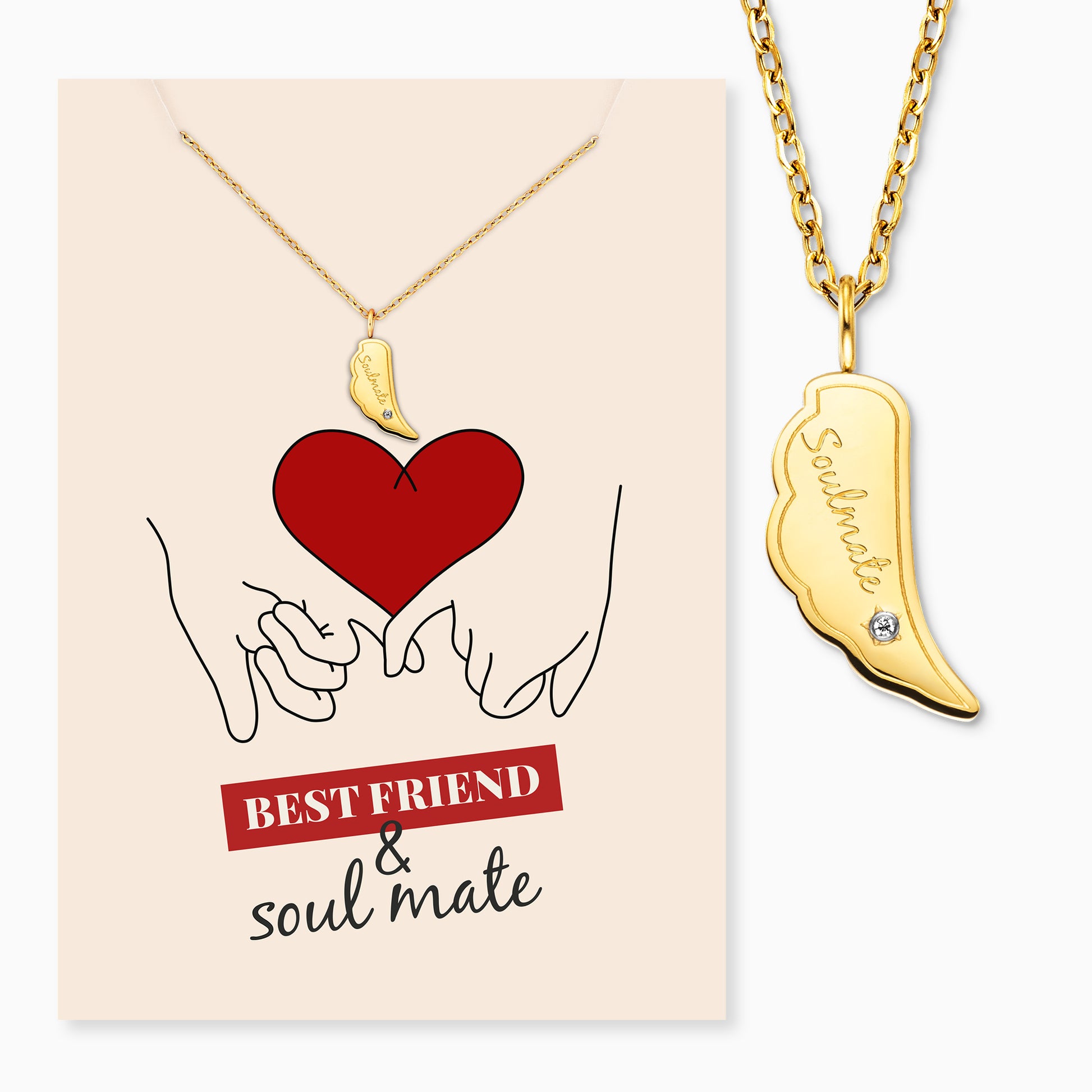 Grußkarte Soulmate mit Halskette Edelstahl Gold