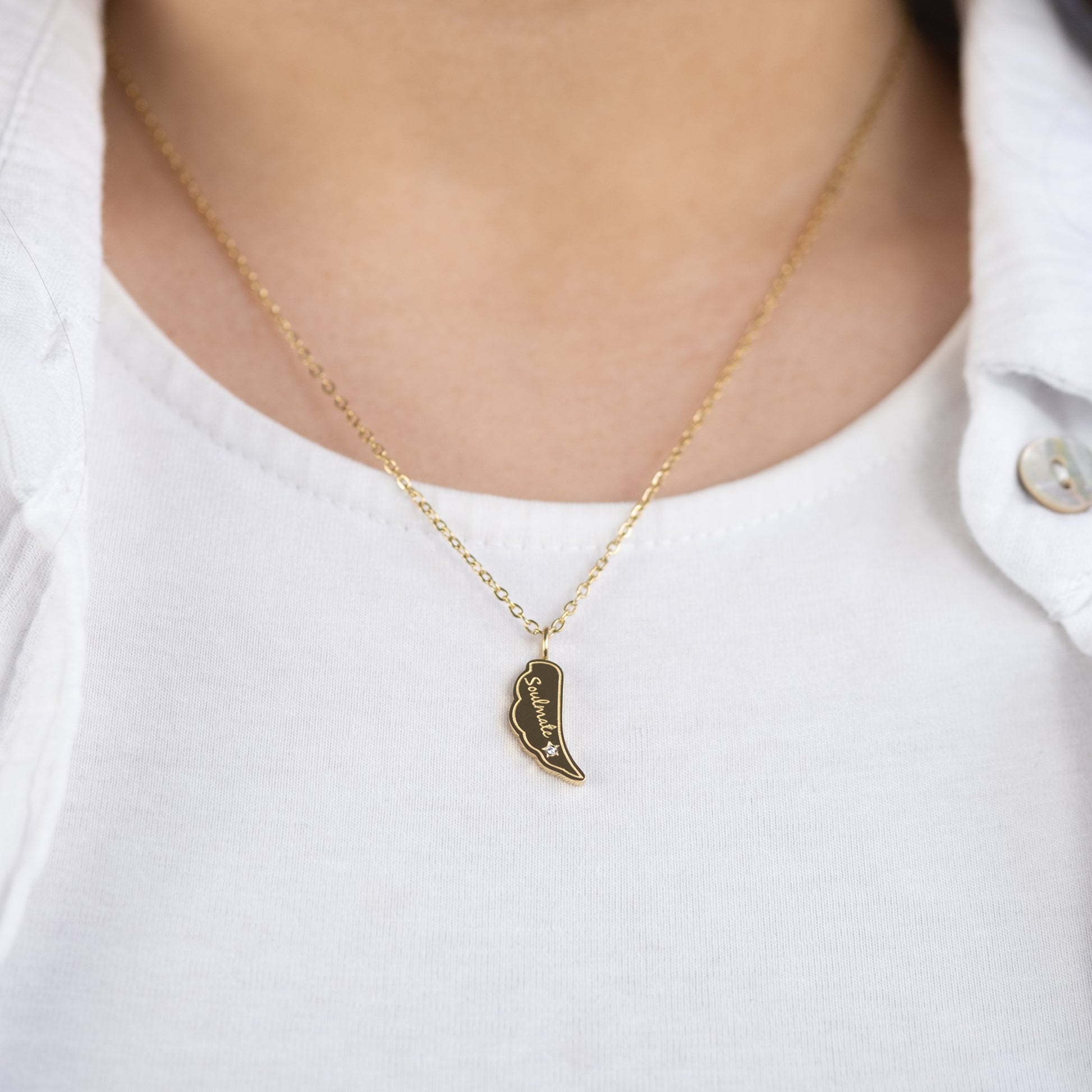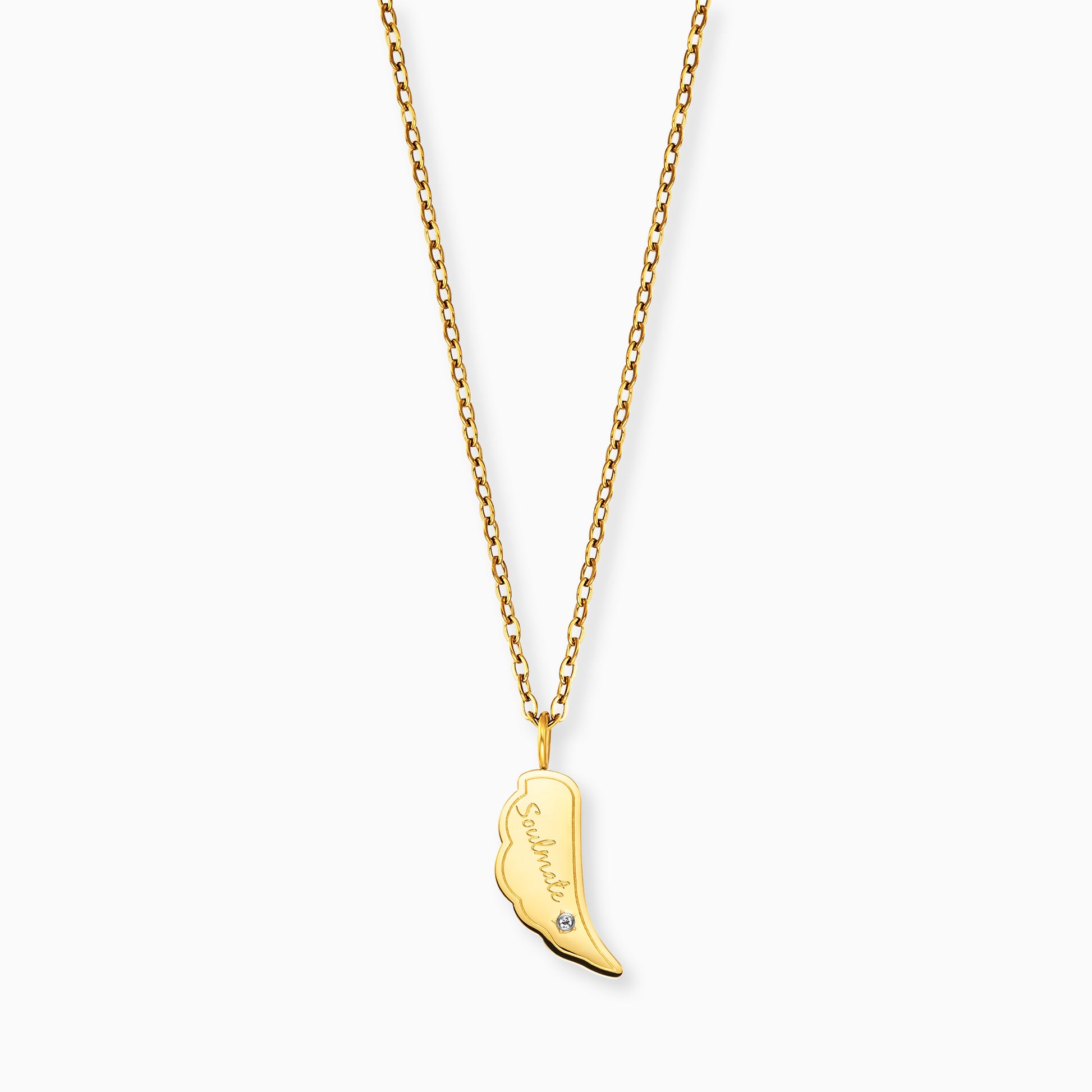 • Goldene Halskette mit graviertem Engelsflügel-Anhänger und Zirkonia Stein