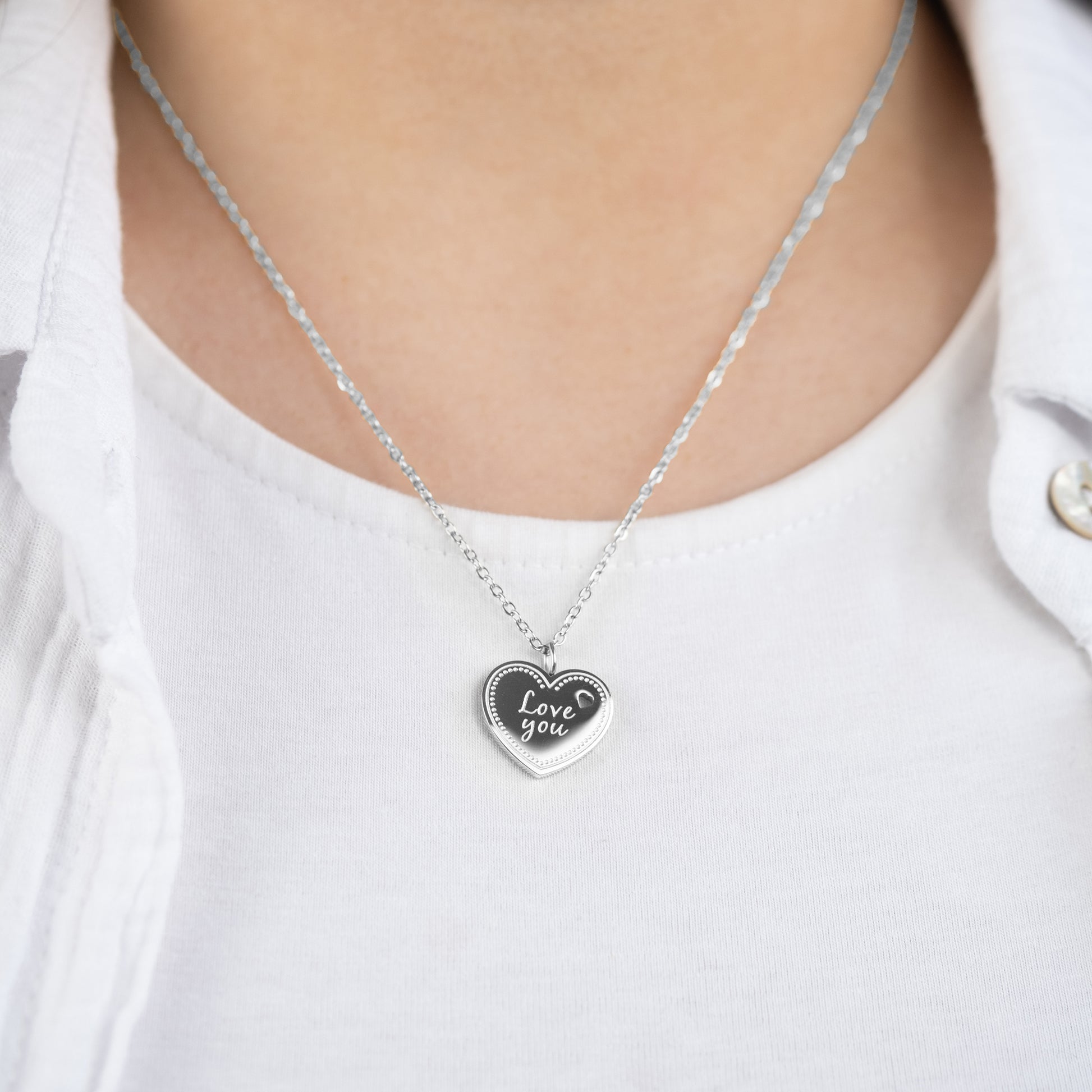 - Silberne Halskette mit graviertem Herzanhänger